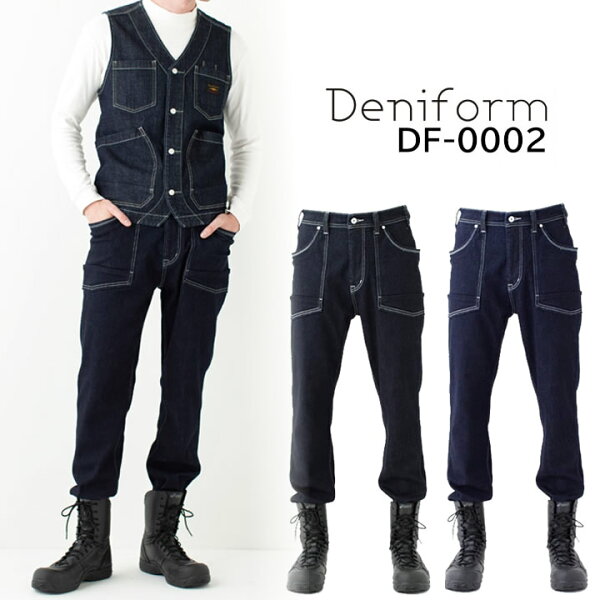 素材:ヴィンテージストレッチデニム 混率:綿94%、ポリエステル5%、ポリウレタン1%デニフォームシリーズ ワイドカーゴパンツ ビックポケットパンツ ヴィンテージスリムパンツ ワークベスト ワークジャケット カバーオール