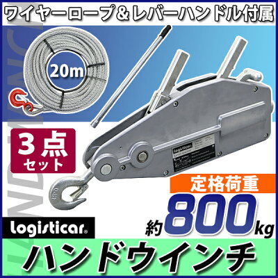 送料無料 ハンドウインチ 万能ウインチ フック付き 定格荷重約800kg ワイヤー約20m付き ハンドル ワイヤー 3点セット 約0.8t 手動ウインチ 万能携帯ウインチ ウィンチ 小型 軽量 荷揚げ 吊り上げ 横引き 建築 林業 造園 引っ張り 機械移動 重量物作業 灰 グレー ltractord800